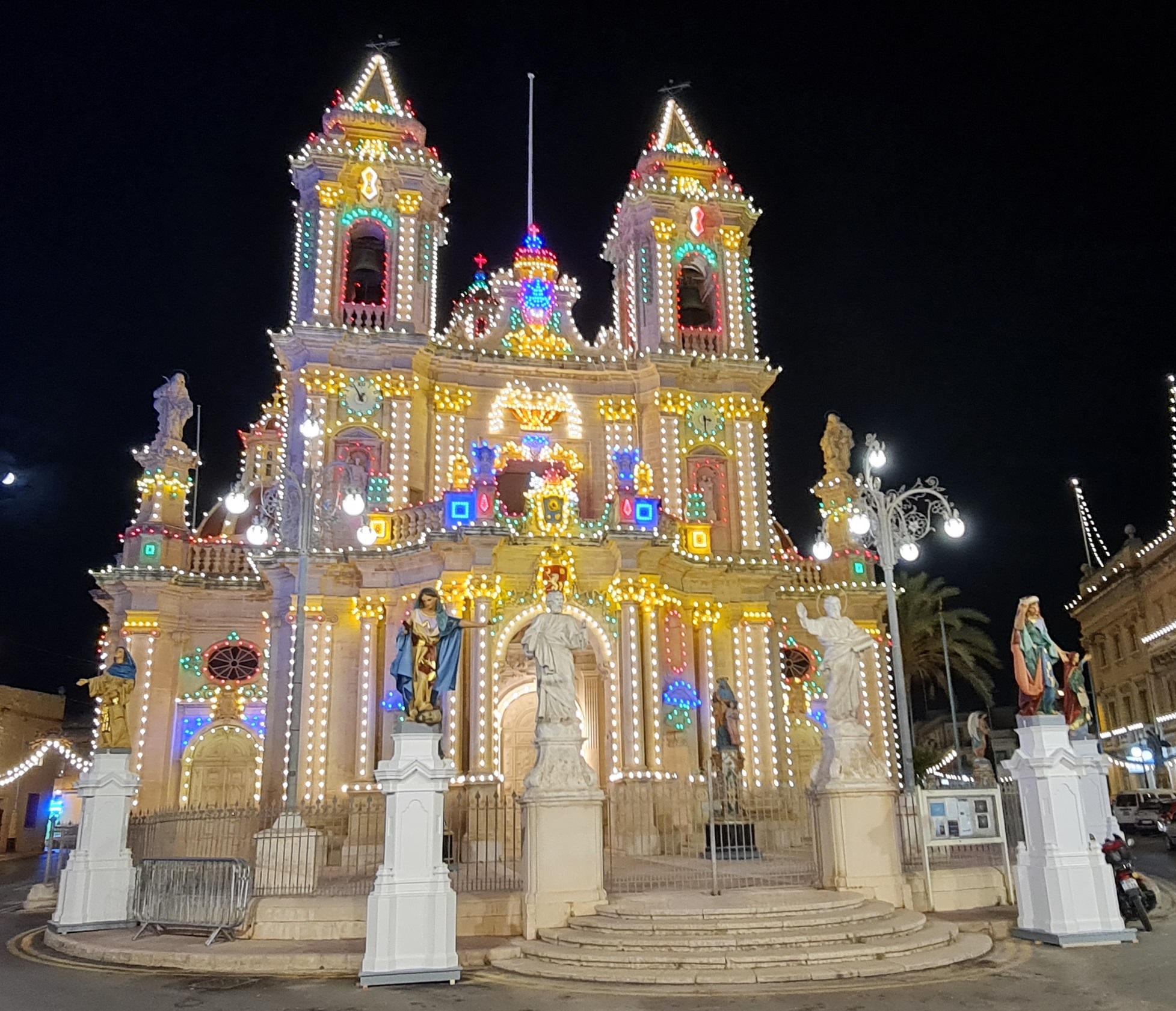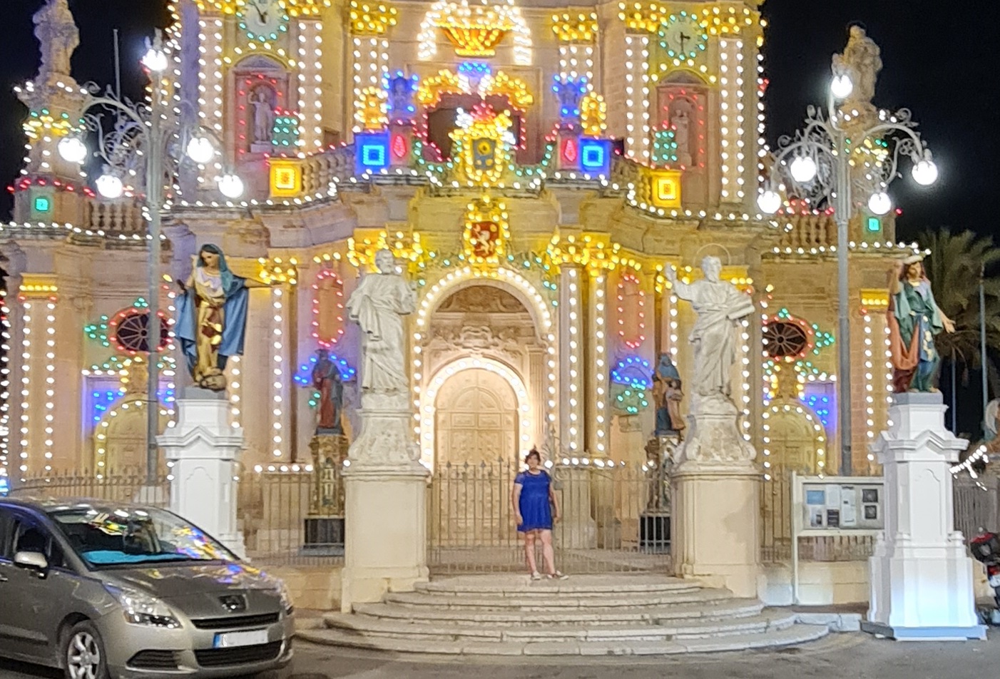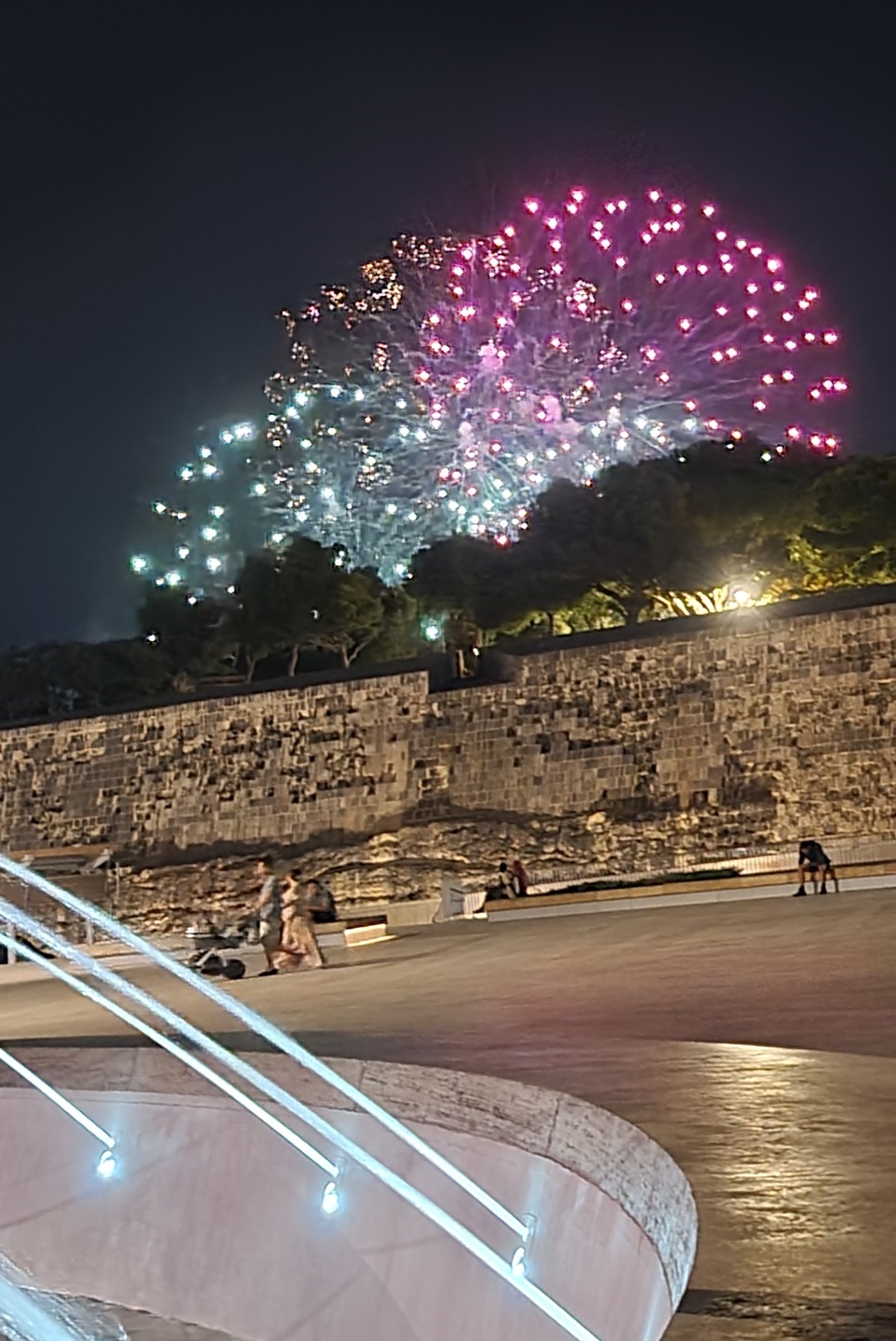 We explore some sights in the evening, take some photos, eat some nice healthy pasta, and explore some more. There are many churches here, some of which are lit up like Xmas trees as night. We photograph some churches, fountains and fireworks.
