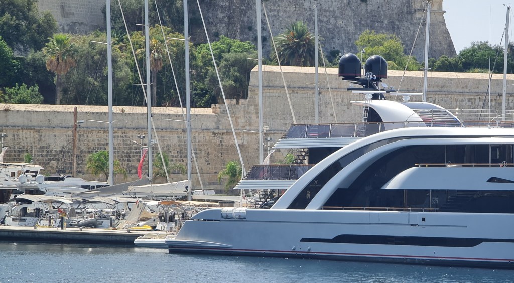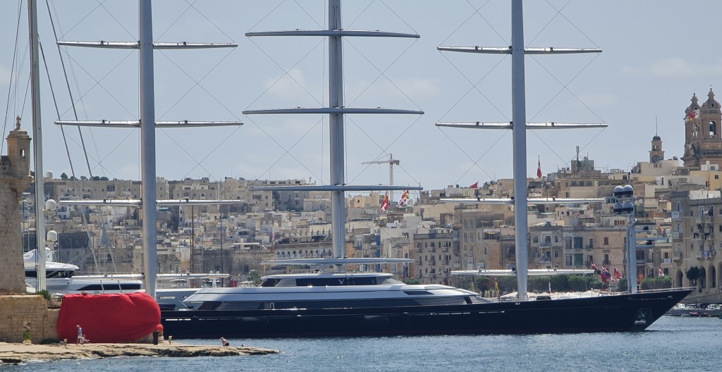 Added almost‑knee‑high high‑heeled boots to this and then we head off on the harbour tour, stopping off only for breakfast and an opportunity for me to spill food down my new white top. Never one to pass up such exciting opportunities (at least in girl‑mode), I proceed to do exactly that. Once on the boat, the top must be adjusted to be tucked inside the skirt to hide to worst of the disaster. Really enjoy the tour; the harbour is much more extensive (and weirdly shaped) than I would have imagined. Quite a wealth‑divide on show: the “have nots” vs the “have yachts”.