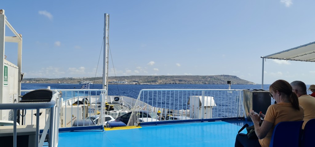 We take a car ferry to a nearby island. Hardly anyone bats an eyelid on the boat. We find an amazing and ancient church which is actually open.