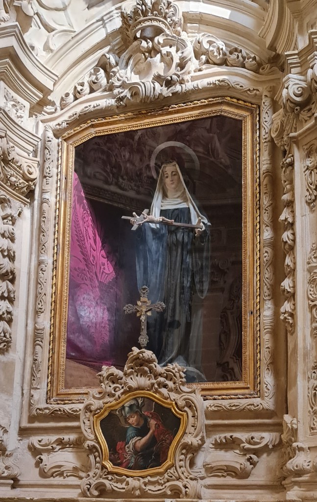 We’re off to find a nice church to explore & admire. This is a very Catholic country, with an amazingly high density of churches per square km. Yet every one I see seems to be locked shut. Not out to shock today – well, not excessively – so a suitably long, below‑the‑knee‑length dress, plus flat shoes, long red hair, and discreet makeup.