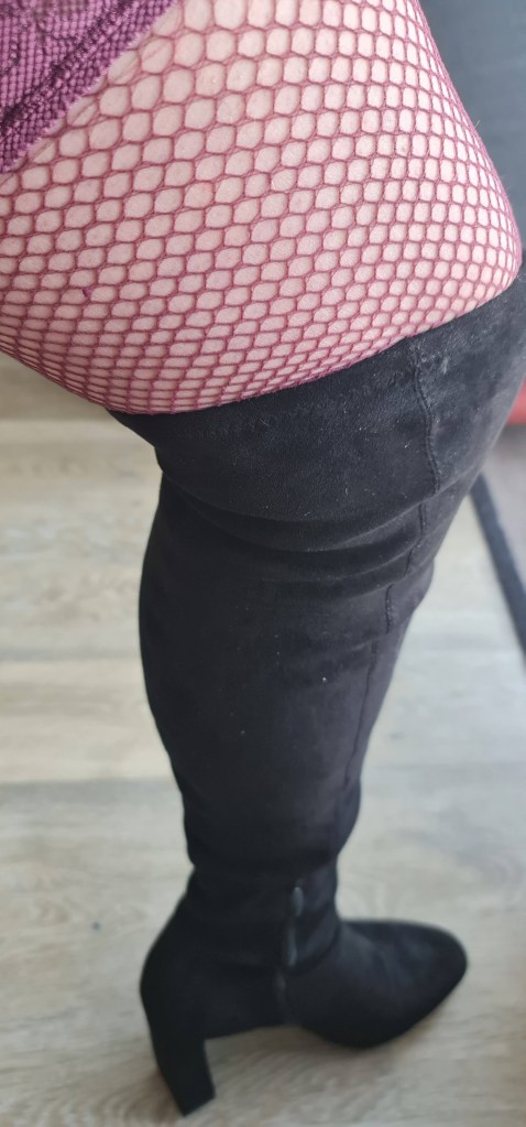 Hold-ups are my personal preference cf the “classic” stockings & suspenders combination. And here is where insufficient lenght really bites – they just won’t stay high enough. Not even my favourite purple fishnet 5XL hold-ups. Yes, XL, Extra Large. Too small. What do all the women taller than myself do?!