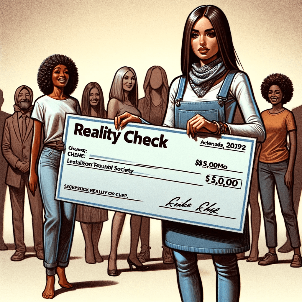 “Reality Cheque” (Love a bad joke), imagined by DALL-E