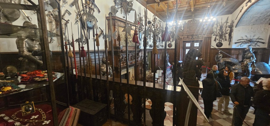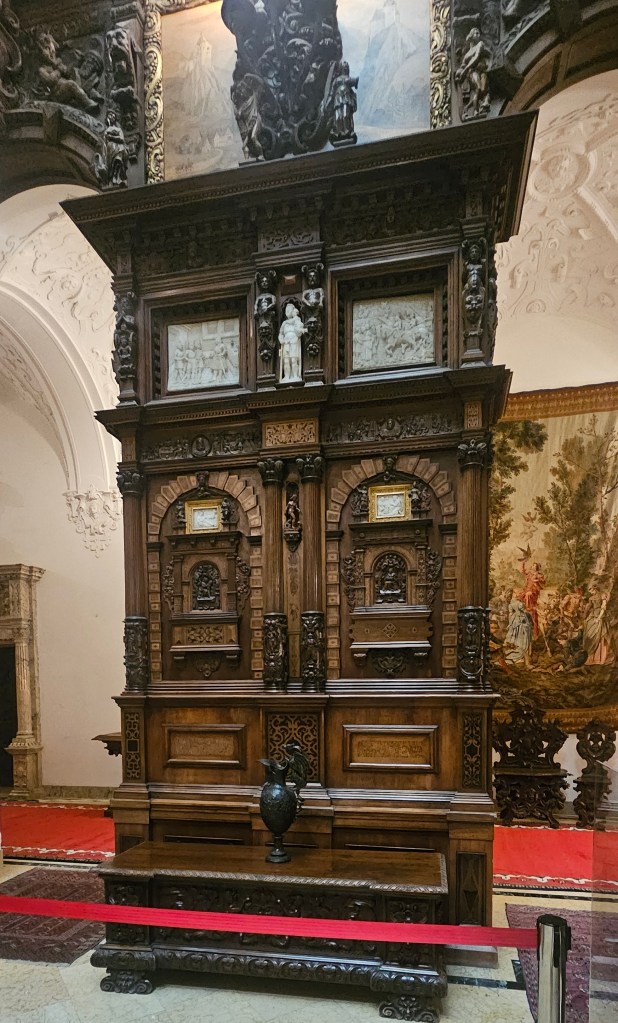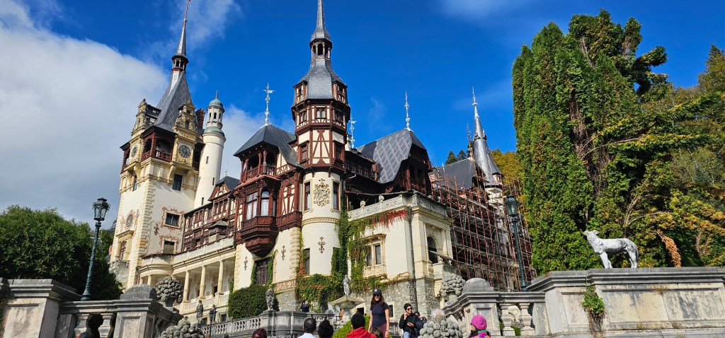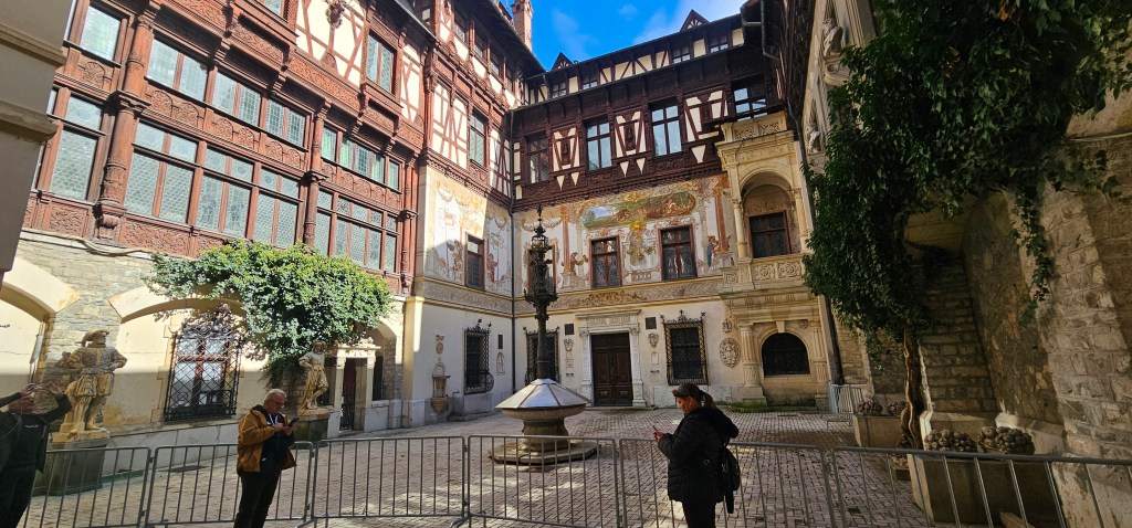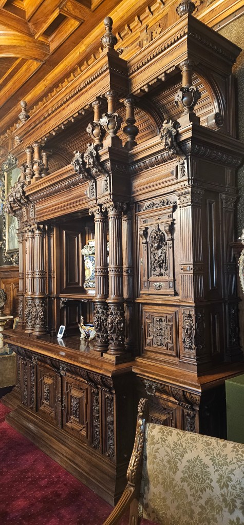 And we’re off. First stop is just past Sinaia for Castelul Peleș, definitely worth a visit if you can. Book your entry time online in advance as nunbers are limited to control flow and wear & tear on the place. A fantastic castle, well preserved and maintained. Tours available in English if you want a tour – but book in advance obviously. You don’t need a tour; the signage & information panels are mostly in Romanian + English + French + Turkish + one or two others I didn’t make a note of. If you like old dark wooden furniture, you’re in luck. I’m just going to stick some photos in. But there is NO substitute for seeing it yourself.